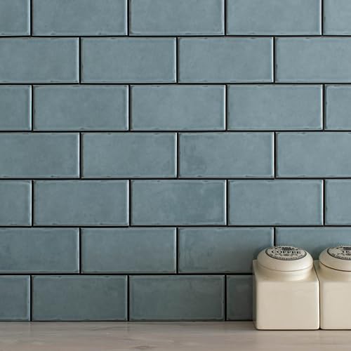 TOMOYASU キッチンタイル サブウェイタイル タイルシール ブルーグレー 黒目地 147×72×7mm 1枚 C-F-1 美濃焼 貼るだけ ベルゲンワッフルの高価買取