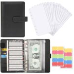 Sitengle A6 バインダー 6穴 予算バインダー PUレザー ポケット12個付き ラベル付き便利セット 家計管理 お金管理 家計簿 書類・伝票・名刺・メモ紙入れ ルーズリーフバインダー システム手帳 (簡易セット(ブラック))