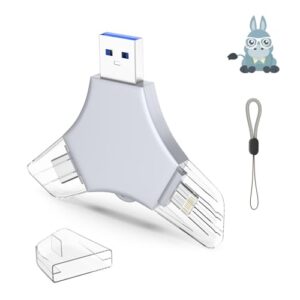 USB 3.0 フラッシュドライブ 64GB iPhone用 3in1 外付けメモリーピクチャーキーパーストレージスティック 写真/ビデオ/データセーバー/バックアップ用 V4.71高速サムドライブ iPhone/iPad/Android/PC用 – 鈍い