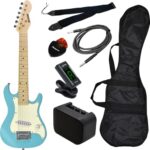 SELDERの子供用ミニエレキギターSTM-05/UBLは、ライトブルーのカラーリングで、初心者に最適なベーシックセットです。軽量で扱いやすく、音楽教育にも適しています。