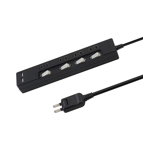 STYLED USB付き電源タップは、2mの延長コード、合計2.4A出力、ACコンセント4個とUSBポート2ポートを搭載。個別スイッチ、雷ガード機能、18ヵ月保証付きで1400W対応のブラックモデル。