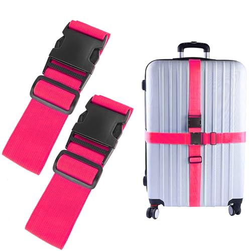 スーツケース旅行アクセサリー、TSA承認のラゲッジストラップ2本セット。80インチの長さ、調節可能でクイックリリースバックル付き。ローズカラーで旅行バッグを安全に保つ。