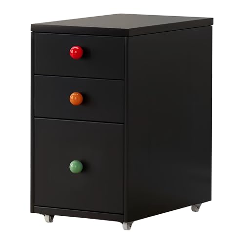 SUKIZUKI デスクワゴン 金属製 取手カラーランダム サイドワゴン キャビネット オフィスワゴン 袖机 キャスター付き 大容量 収納用品 仕切り付き 組み立て簡単 幅28cm 寝室 キッチン オフィス 黒-3段タイプ 高価買取中