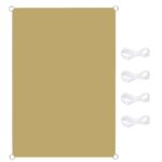 オーニングシェードは撥水性で、サイズは3 x 5.5 m。風通しが良く、窓やベランダで快適空間を提供。庭用タープとしても使用可能で、フリーロープ付き。カラーはサンドイエロー。