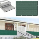 濃い緑色のバルコニーシェード、サイズ105x280cm。高密度ポリエチレン製で遮熱・断熱効果あり。通気性に優れ、簡単に取り付け可能。庭や屋外、パティオに最適。