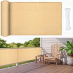 UVカット機能付きの日除けシェード(60 x 1000 cm)です。風通しが良く、四辺にハトメ付き。水洗い可能で、あらゆるサイズと穴間隔のカスタマイズがサポート。ベランダや工事現場、屋外での使用に最適。クリーム色。