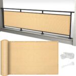 日よけシェードは280 x 750 cmで、通気性に優れています。強化銅製ハトメと二層重ねの縁、高密度ポリエチレン素材で遮光・遮熱機能があります。固定用ヒモと結束バンド付きで取り付け簡単。ベランダや庭、工事現場での使用に最適です。クリーム色です。