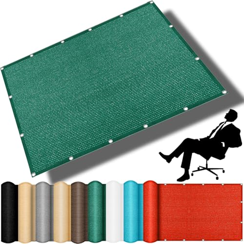 ベランダ目隠しシェードは50x450cmで98%のUVカット効果。通気性が良く、断熱・遮光性能もあり、風通しも快適。ハトメ付きで簡単設置、固定ロープと結束バンドも付属し、様々なアウトドアシーンに最適な濃い緑色の製品です。