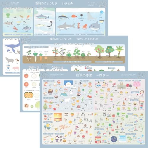 【オシャレなお風呂ポスター】3枚_小学校受験セット①_四季_野菜果物生き物 学習ポスター A3サイズ 小学校受験 対策 日本の季節 野菜 果物 生き物 幼児 知育玩具 学習玩具 受験対策 就学準備 防水仕様 季節 日本製 プレゼント 孫の高価買取ITEM