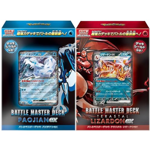 このデッキセットには、テラスタルリザードンexとパオジアンexが含まれており、強力なバトルが楽しめます。戦略的なデッキ構築や新たなカードの魅力を体験できるアイテムです。