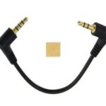 Sound Wave製の4極L字型から3極L字型への変換オーディオケーブル。長さ20cm、カラーはブラック。ステレオイヤホン接続用で、オリジナルのレザー調MicroFiberお手入れクロス付き。