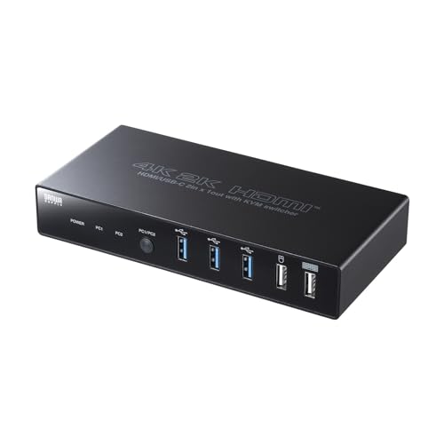 サンワサプライのSW-KVM2DKは、Type-CおよびHDMI接続対応のパソコン切替器です。エミュレーション機能は搭載されておらず、シンプルな切替が可能です。