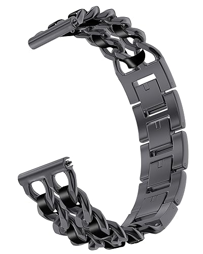 この18mm幅のスマートウォッチベルトは、ステンレス製でチェーンデザインです。女性向けのスタイリッシュなBLACK×BLACKカラーが特徴。交換用としても最適です。