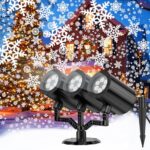 YAGOPALのクリスマススノーフレークプロジェクターライトは、360°回転し、明るさ調整可能な3ヘッドデザインで、室内外のパーティーデコレーションに最適です。
