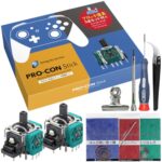 2024年11月販売開始のN-Switch純正プロコン修理キット。スティック2個、プロ用小道具3点、交換用工具、交換手順書付き。アナログスティックやドリフト修理に最適!