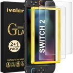 [2枚入り] Switch 2用の防眩エッチング加工画面保護フィルム。マット仕様で反射防止、強化ガラス製。アライメントフレーム付きで簡単装着、全面保護・スクラッチ防止効果あり。