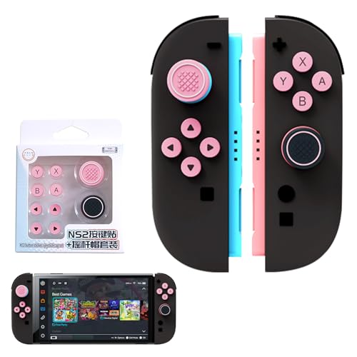 [10個入り] Switch 2対応のアナログスティックカバーとボタンカバー。Sediven製で、コントローラーを保護し、修理や交換に最適。ピンク+ホワイトの可愛いデザインが特徴です。