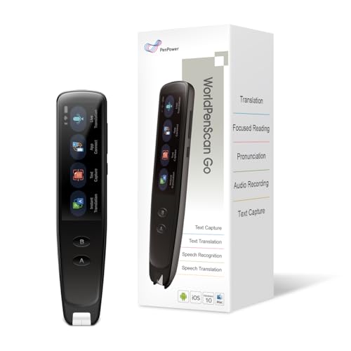 PenPower WorldPen Scan Goは、OCR機能搭載のリーディングペンで、テキストと音声を読み上げます。データ入力が可能で、第二言語学習に最適。ワイヤレスで使用でき、LCDタッチスクリーンとWi-Fi接続も備えています。