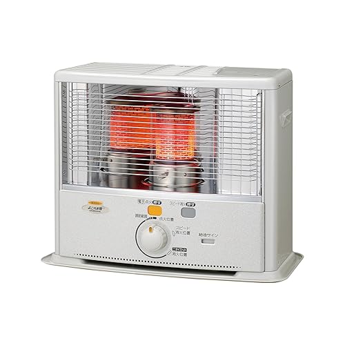 CORONA 石油ストーブは木造8畳、コンクリート10畳まで対応。電子点火で電源不要、防災対策やキャンプにぴったり。タンク容量5L、ワンタッチ給油が可能なホワイトモデルです。