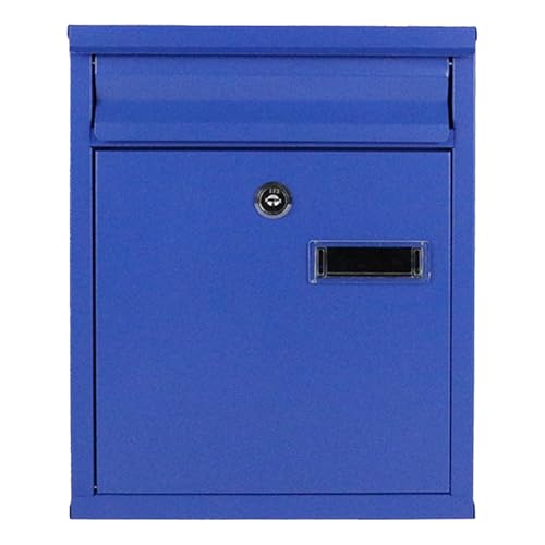 鍵付き小型郵便ポストです。亜鉛メッキシート製で屋外用に適しており、郵便物、新聞、カードを収納可能。サイズは26×11×32cm。カラーはブルーです。