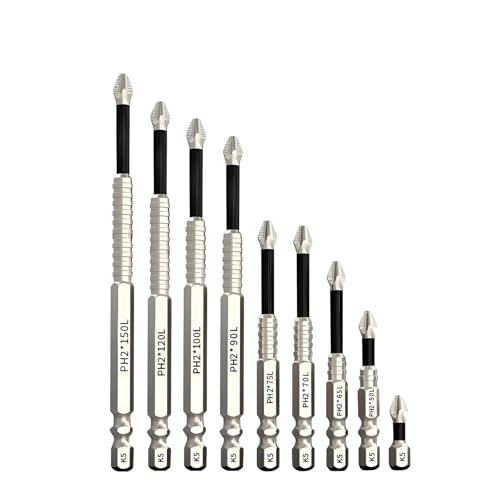 9本の磁気ドライバービットセット。HRC62の高硬度S2合金鋼製で、衝撃に強く、強力な吸着力を持つ。軽量で持ち運びが簡単。電動ドリルと手動ドライバーの両方に対応。