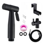 HAMILOのシャワーヘッドは、高水圧で効率的な掃除をサポート。ステンレス製で耐久性も抜群。トイレ用の分岐水栓とシャワーホースが付属し、シンプルなブラックデザインが魅力です。