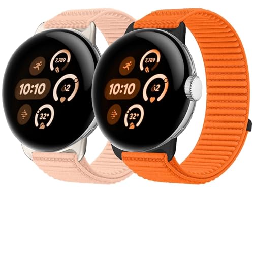 Google Pixel Watch 4/3用の45mmナイロン織物面ファスナーのウォッチバンド。オレンジ色で、通気性と耐久性に優れ、メタルインターフェイスがスタイリッシュなデザインを引き立てます。