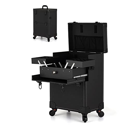 メイクアップトレインケースはポータブルで、ネイルやヘアスタイリングに最適。360°回転ホイールと快適なグリップ付きで、移動もスムーズです。