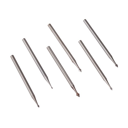 6本セットの傘型ドリルビットは、タングステン製の超硬バーで、リューターやDIYに最適。軸径2.35mmで、1.0mmから2.3mmまでの6サイズが揃い、面取りや研磨作業に便利です。