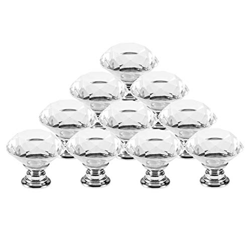 引き出し用クリスタルガラスノブ、10個セット。透明で美しいデザイン、簡単取り付け。インテリアに華やかさをプラスします。サイズ:約3cm、適応ドア厚:2-4cm。金具付き。耐久性に優れ、長持ちします。