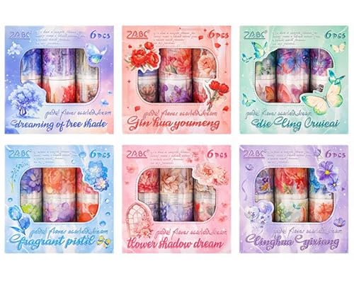 / EiEi 型抜き 柄違い6ロール ダイカット クリアテープ 幅広60mm 特油 凹凸立体感 光沢感 買い得セット 樹 四つ葉 クローバー 薔薇 花びら 蝶 コラージュ素材 透明テープ PET 耐水 シール イラスト ステッカー 白 赤 紫 オレンジ ピンク デコレーション フレークシール 手帳 日記 DIY sztz-01-219 4.靈花瑞彩