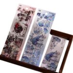 金箔押しと銀箔押しの立体透明シールシート。花柄や古風なデザイン(薔薇、金魚、扇子など)でデコレーションに最適。耐水性のクリアステッカーで、手帳や日記、ハンドメイド作品に最適。
