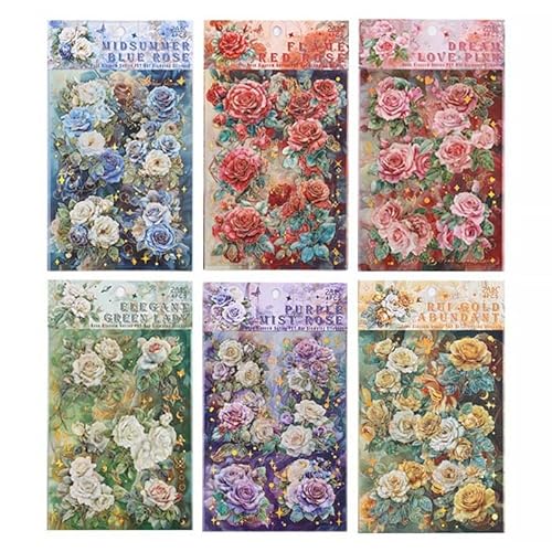 金箔押し型抜きシールシート。特油で光沢感あり、立体感も楽しめるPETシール。鮮やかな花柄で、おしゃれなコラージュ素材。耐水性あり、手帳や日記、写真アルバムのデコレーションに最適。