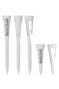 Backs\Rush(バックスラッシュ) ゴルフ ティー スリム 高さ 調整 5段階 調整可能 目盛 段付き しなる 挟めるティー ロングティー 78mm 3本 ショートティー 40mm 2本 5本入り 日本製 高耐久 ゴルフ規則に適合 バッスラティー Gen-2 キャップ 帽子 ベルト パンツ スコアカード ホルダー ヘッドカバー などに (1パック ホワイト)