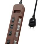 エレコムの電源タップ T-BR02-2410BRは、4個口で1mの長さ。雷ガード機能と省エネ設計を搭載し、個別スイッチ付きで便利。ブラウン色で、インテリアに合わせやすいデザインです。