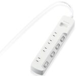 エレコムの電源タップ(T-E5A-2410WH)は、個別スイッチ付きで4個口。省エネ設計のスイングプラグを採用し、長さ1m、カラーはホワイトです。使いやすさと省エネを兼ね備えた便利なアイテムです。
