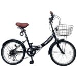 TOMONAUの20インチ折りたたみ自転車は、6段変速、カゴ、ワイヤー錠、ライト付き。通勤・通学に最適で、前後泥除け装備。ハンドル高さ調整可能な小径車。ミニベロ-T-FDB206L(ブラック)。