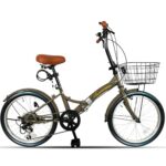 TOMONAUの折り畳み自転車は20インチで、耐パンクタイヤを採用。6段変速、カゴ、ワイヤー錠、ライト付き。前後泥除け装備で通勤や通学に最適。ハンドルの高さ調節が可能な小径車。