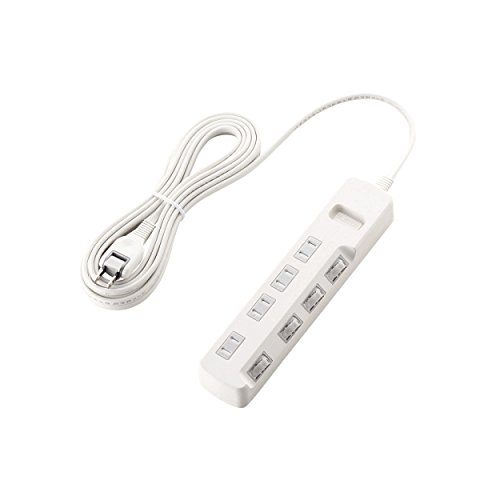 エレコムの電源タップT-K6A-2450WHは、雷ガード機能、個別スイッチ、ほこりシャッター付の4個口タイプ。長さは5mで、ホワイトカラー。安全性と使い勝手を兼ね備えた便利なアイテムです。