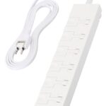 エレコムの電源タップ T-KF07-2620WHは、雷ガード付きで6個口、2mのコード長を持ちます。イージーリリースタップや回転脚パーツ、吊り穴、極性対応、ほこりシャッター、スイングプラグを備えたホワイト仕様です。