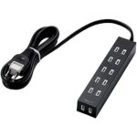 エレコムの電源タップT-NFL01-2620BKは、6個口仕様で2.0mの長さを持ち、ホコリシャッター付き。耐熱素材を使用しており、安全性と利便性を両立しています。黒色デザインでスタイリッシュ。