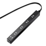 エレコムのACアダプタが5つ挿せる幅広コンセント。雷ガード付きで6個口、コード長2m。カラーはブラック。安心して利用できる設計です。