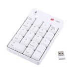 USB接続の2.4GHzワイヤレスナンバーパッド。18キーで10mの遠隔距離を対応。シザーキーで静音設計、財務会計やノートPCに最適。カラー: ホワイト。