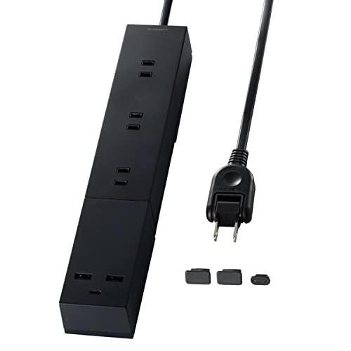 エレコムのUSBタップは、2mのケーブル長を持ち、ブラックのデザインで、複数のデバイスを同時に充電可能。安全な電源管理機能も搭載。