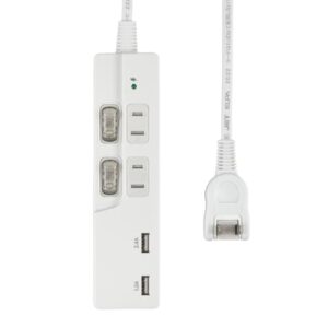 【ヒカリテラス】 シャッター付電源タップ 雷ガード USB付 USBタップ 2個AC口 2USBポート ほこり防止 ホワイトの製品情報
