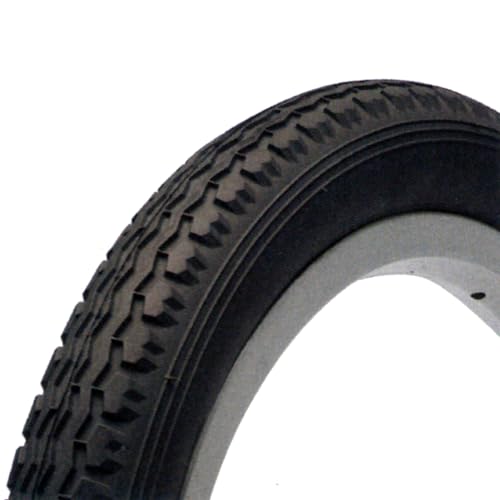 16インチの自転車用タイヤは、耐久性に優れたブラックのデザインが特徴です。優れたグリップ力で安全な走行をサポートし、さまざまな路面に対応可能です。