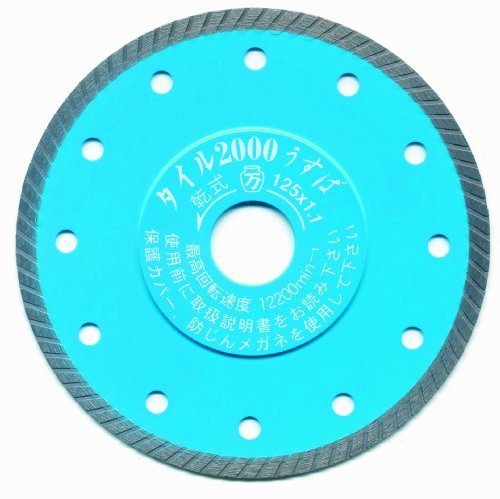 ツボ万 ダイヤモンドカッタータイル2000うす刃 T2000U-125は、125mmのサイズで厚さ1.1mm、内径22mmの薄刃設計。高品質なダイヤモンド素材を使用し、タイルや硬い石材の切断に最適です。