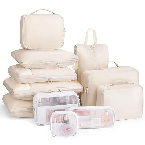 トラベルポーチ11点セットは圧縮機能付きで、旅行用の衣類や小物を効率的に収納。軽量かつ整理整頓が簡単で、出張や海外旅行に最適。ベージュカラーがシックで使いやすい便利グッズです。