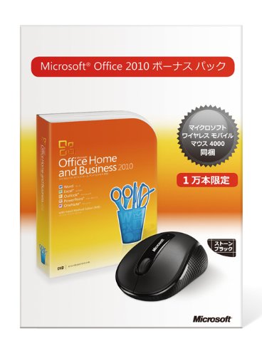 Microsoft Office Home and Business 2010は、ビジネス向けアプリケーションを集約したパッケージで、ワイヤレスマウス4000が同梱。効率的な作業をサポートします。