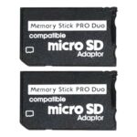 オーディオファンのmicroSD→メモリースティック Pro Duo変換アダプタ。最大32GB対応、PSPなどに適した互換品。サイズは20×31×1.6mmで、2点セットです。